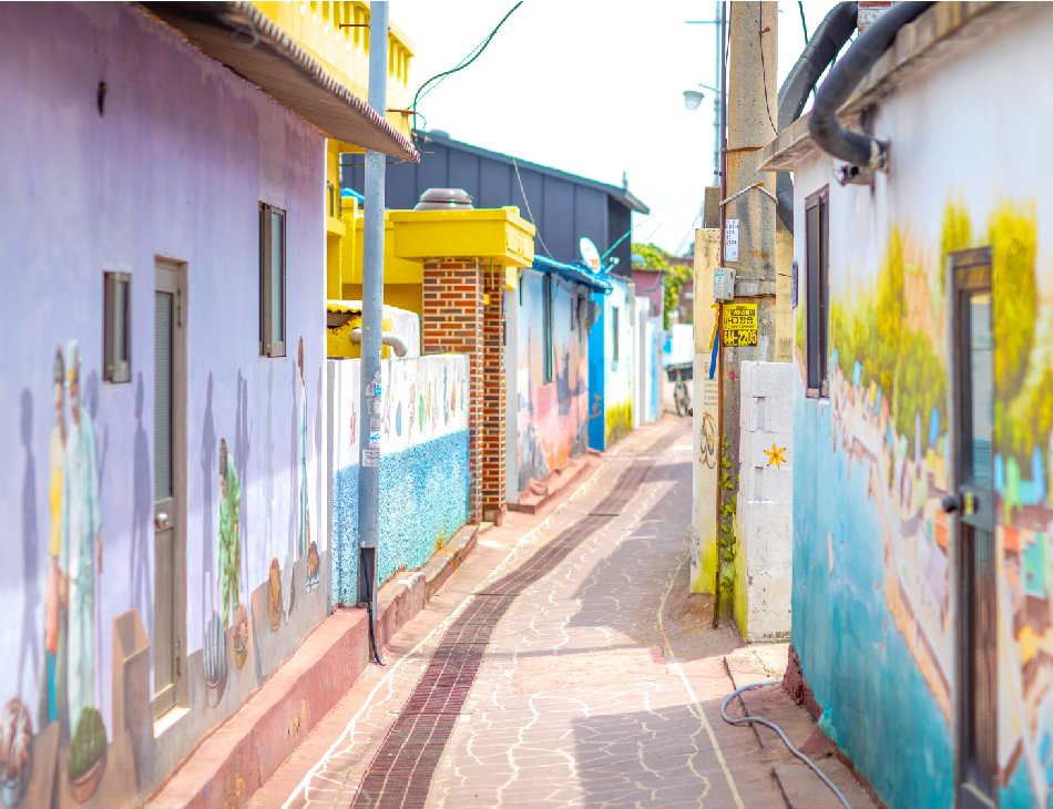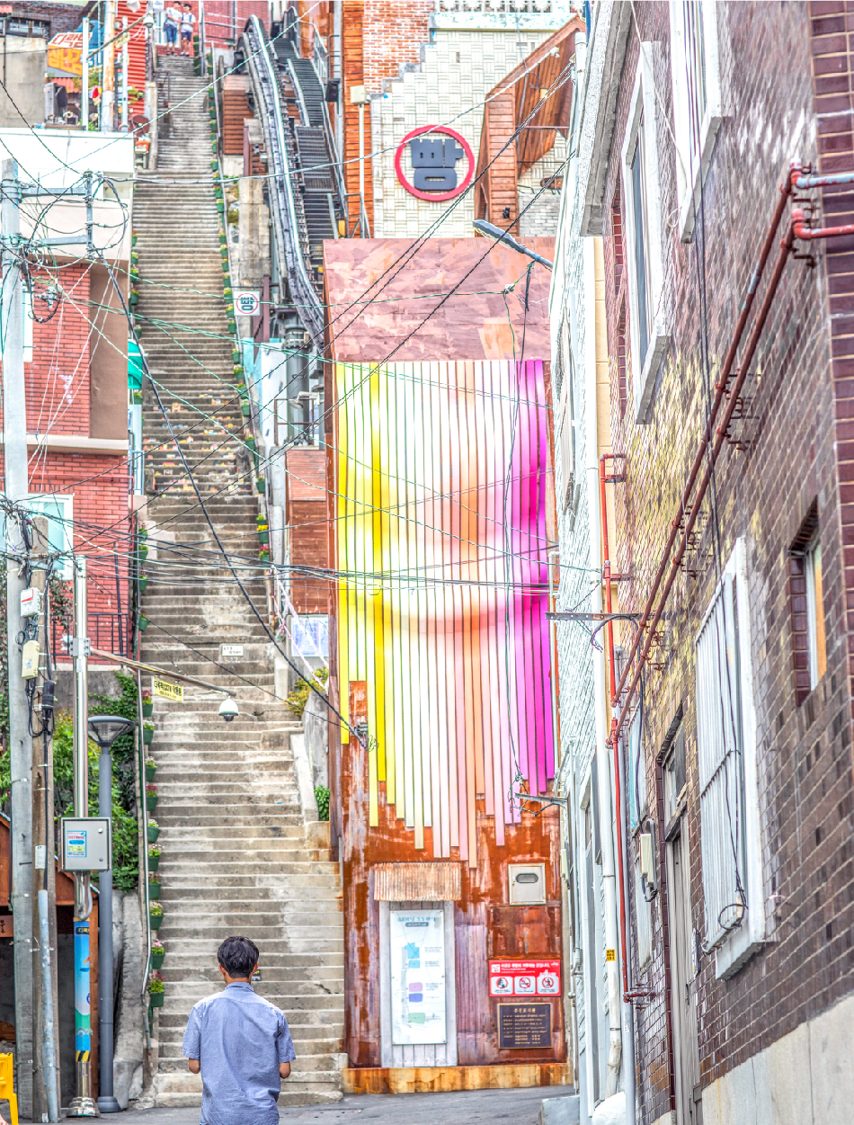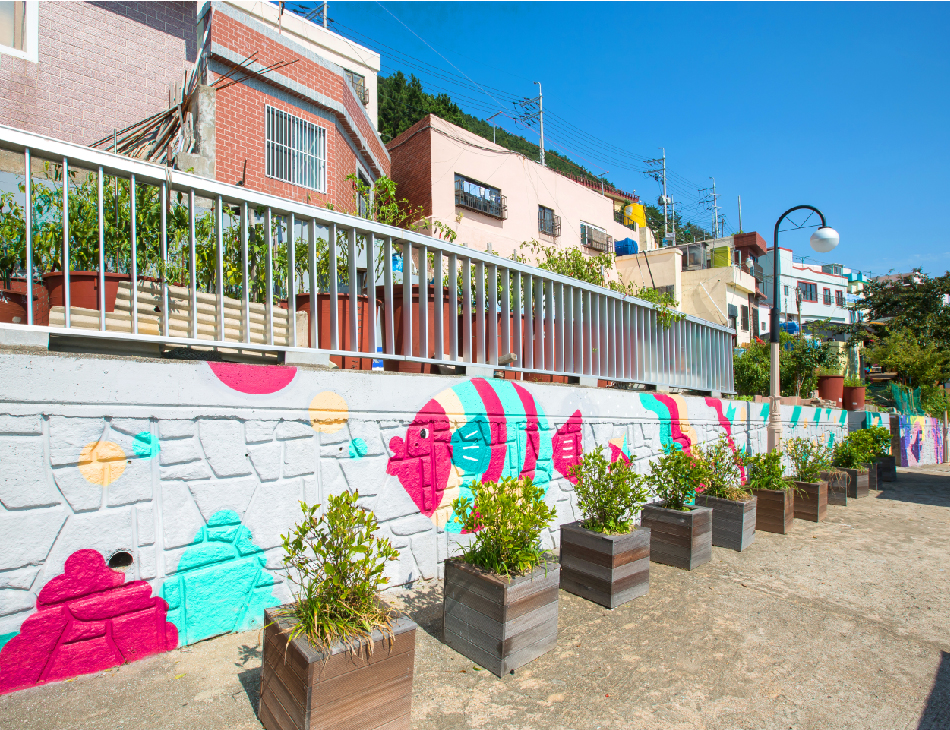 元は朝鮮戦争を逃れ移ってきた避難民たちにより形成された集落で、2009年から『夢見る釜山のマチュピチュ』計画『美路迷路 路地プロジェクト』により住環境の整備事業と壁画事業が進み、現在の姿に美しく進化を遂げました。そして今では、釜山の必須旅行コースとして代表的な観光地となりました。