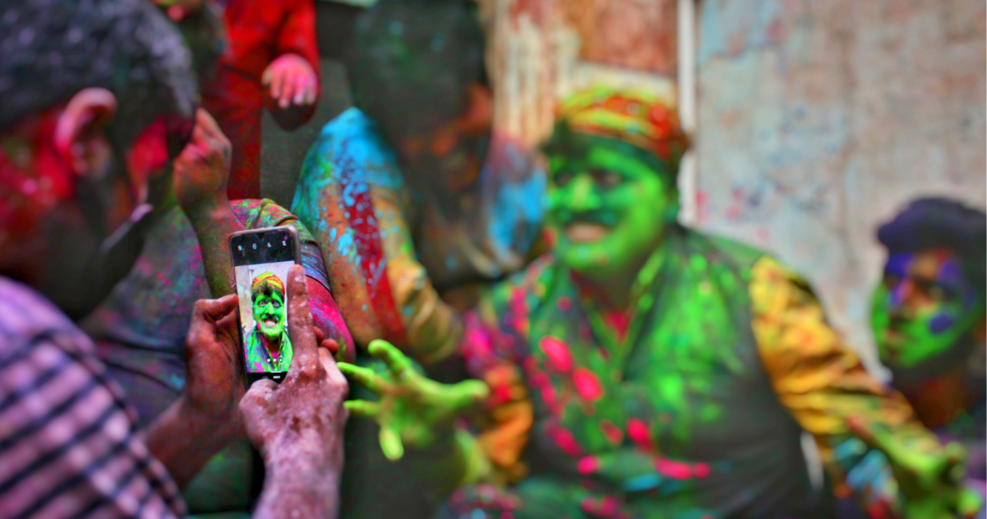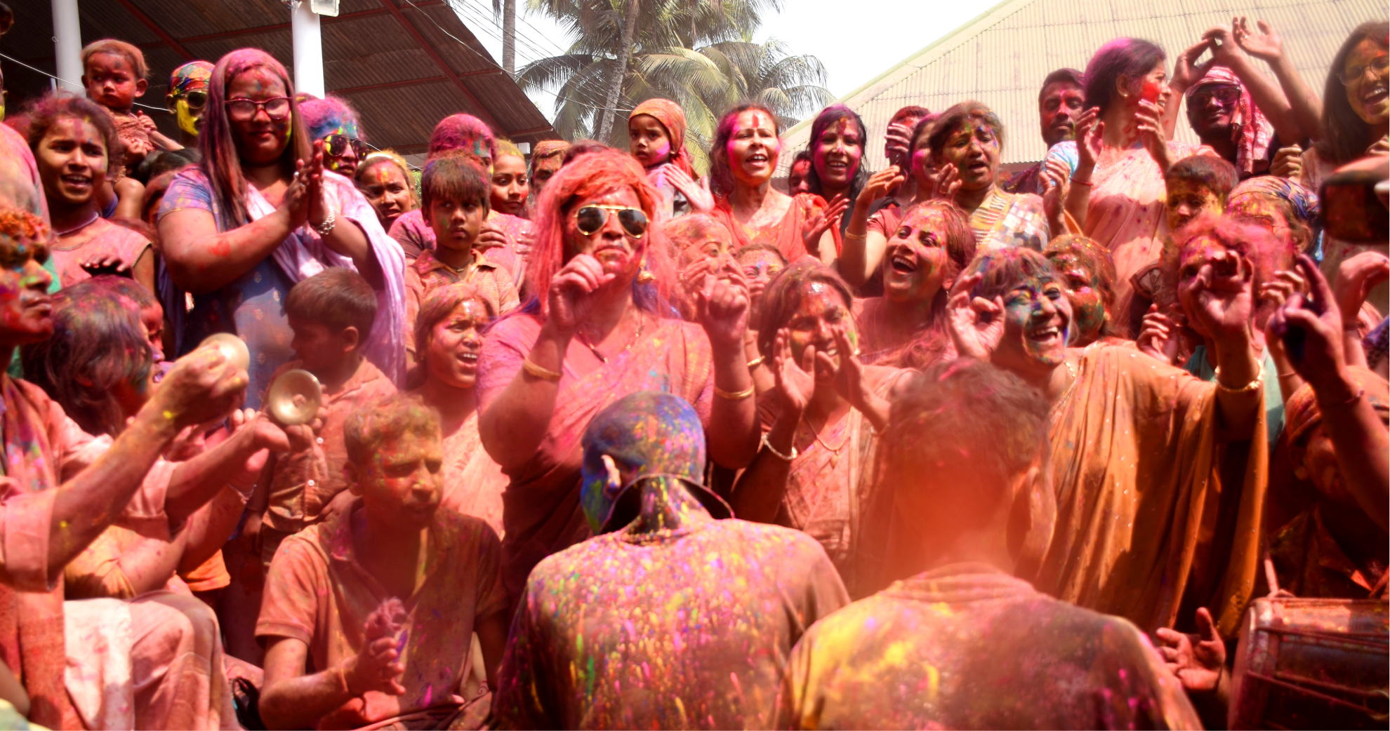 『ホーリー』とはヒンドゥー教の最大のお祭りで、インドにおける作物の収穫が終わる時期にあたって春の到来を祝福し、色鮮やかなカラーパウダーや色水を家族から他人までお構いなく、とにかく掛け合う少し変わったお祭りになっています。