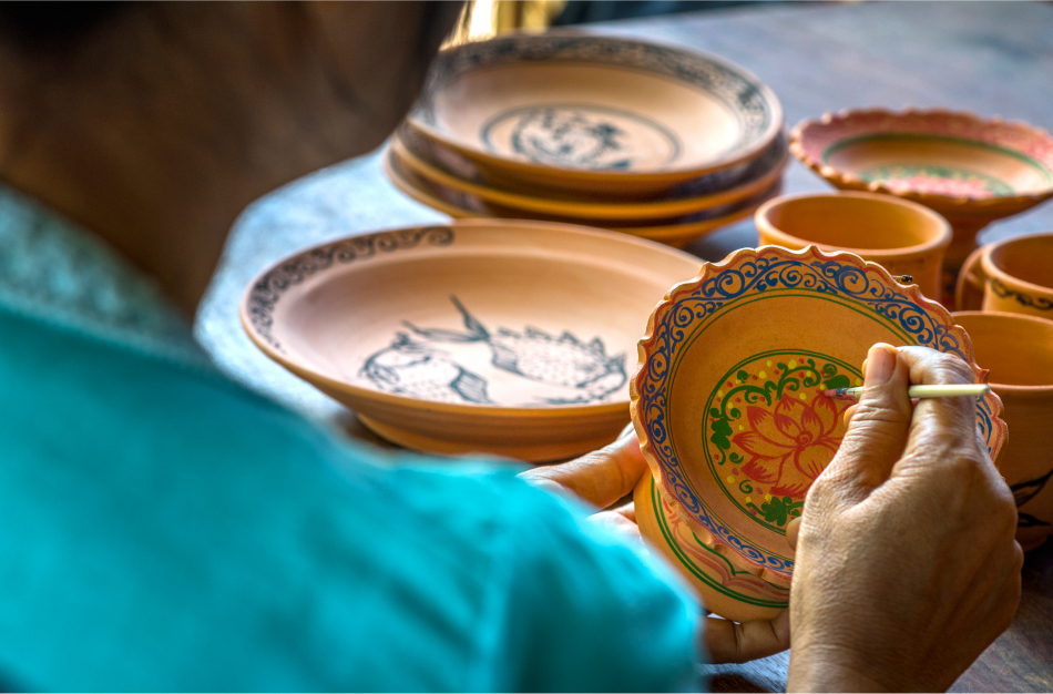 旅のお土産にサンカローク焼きやゴールドテキスタイルなどはいかがでしょう(^^