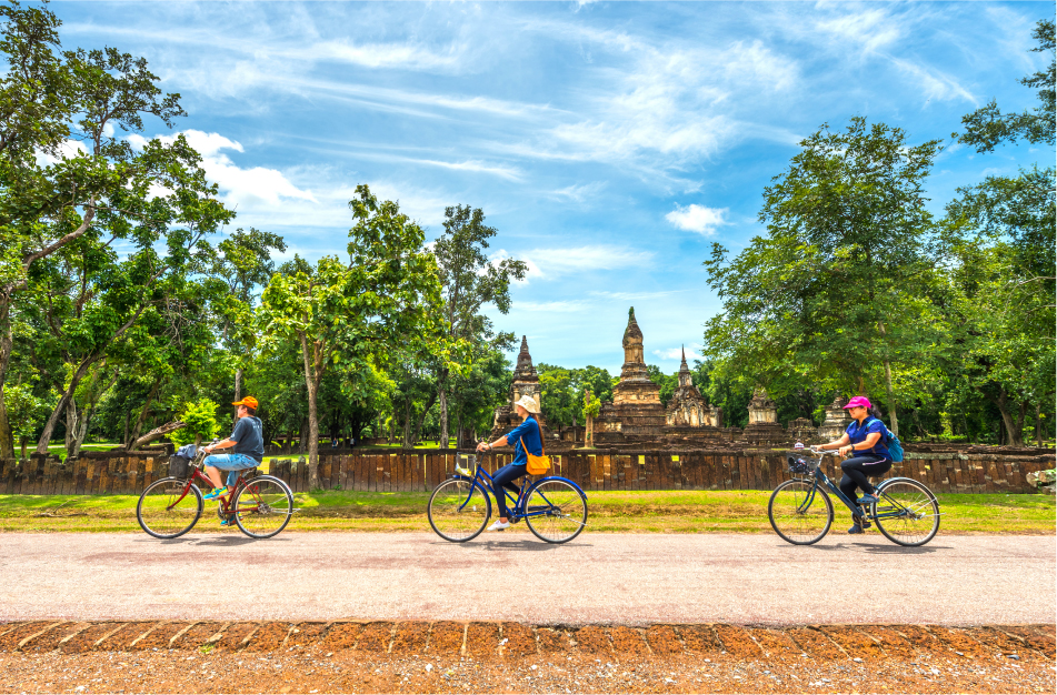 小さな田舎町なのに、歴史公園となった仏教遺跡群とタイ伝統のお祭りロイクラトン(灯籠流し)発祥の地としてタイの人気観光地の一つです。