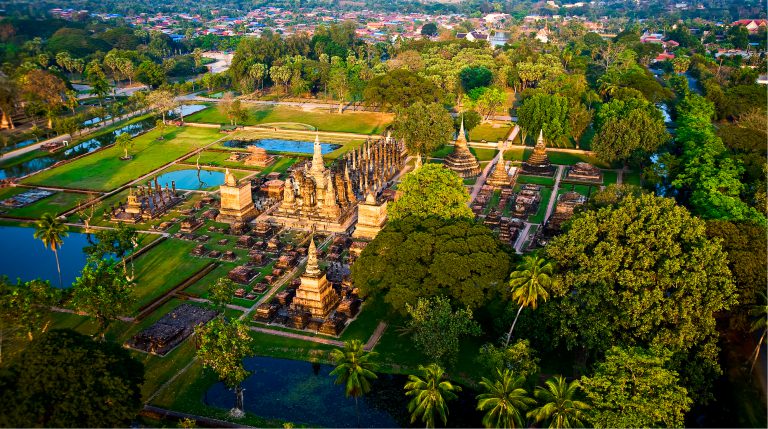 小さな田舎町なのに、歴史公園となった仏教遺跡群とタイ伝統のお祭りロイクラトン(灯籠流し)発祥の地としてタイの人気観光地の一つです。